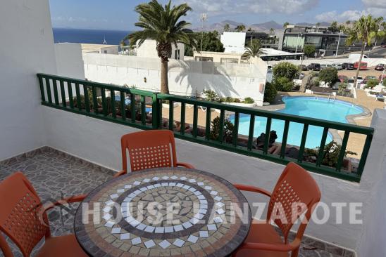 First floor apartment with sea views in a gated complex with communal swimming pool. The accommodation comprises of: 2 bedrooms, shower room, lounge/diner/kitchen and balcony with sea views. Constructed area 62m². Excellent condition throughout.