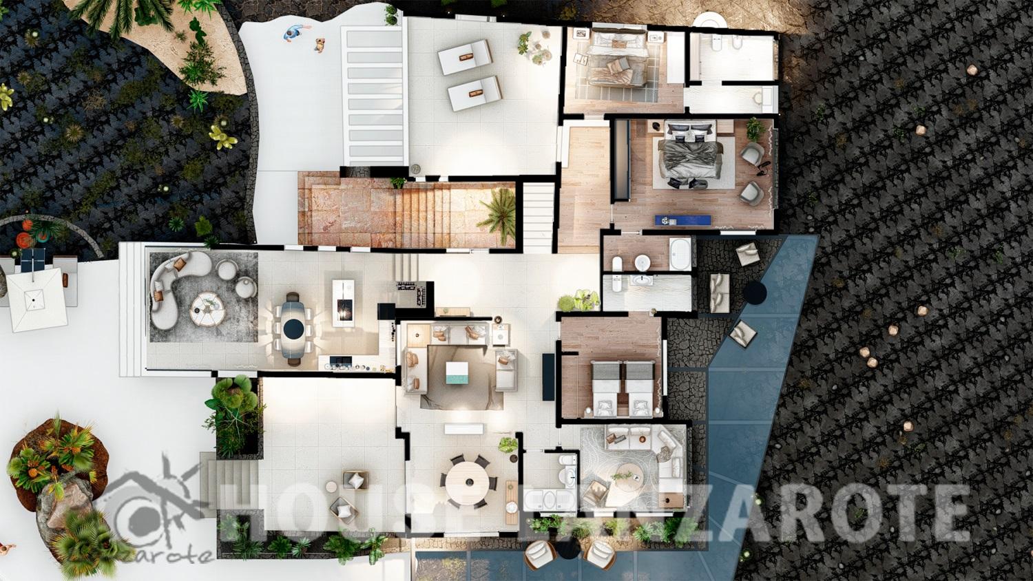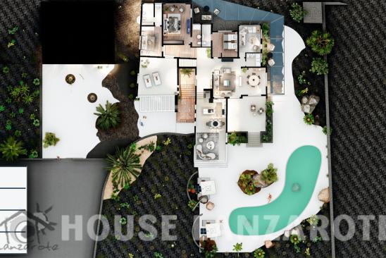 Newly built villa with excellent qualities and finishes with views to the volcanoes. Consists of: 5 bedrooms, 5 bathrooms and 1 toilet, kitchen / dining room / living room, gym with jacuzzi, several terraces, off the street parking and a private swimming pool. Constructed area 335m² on a plot of 2009m².