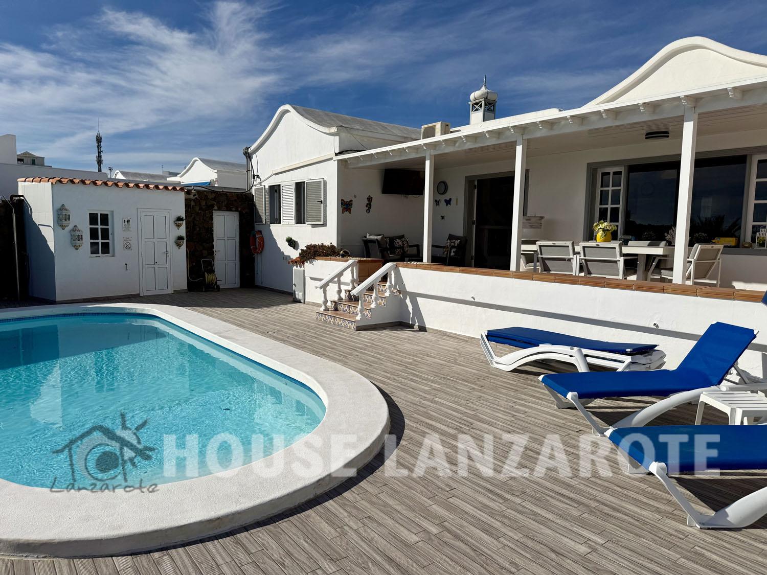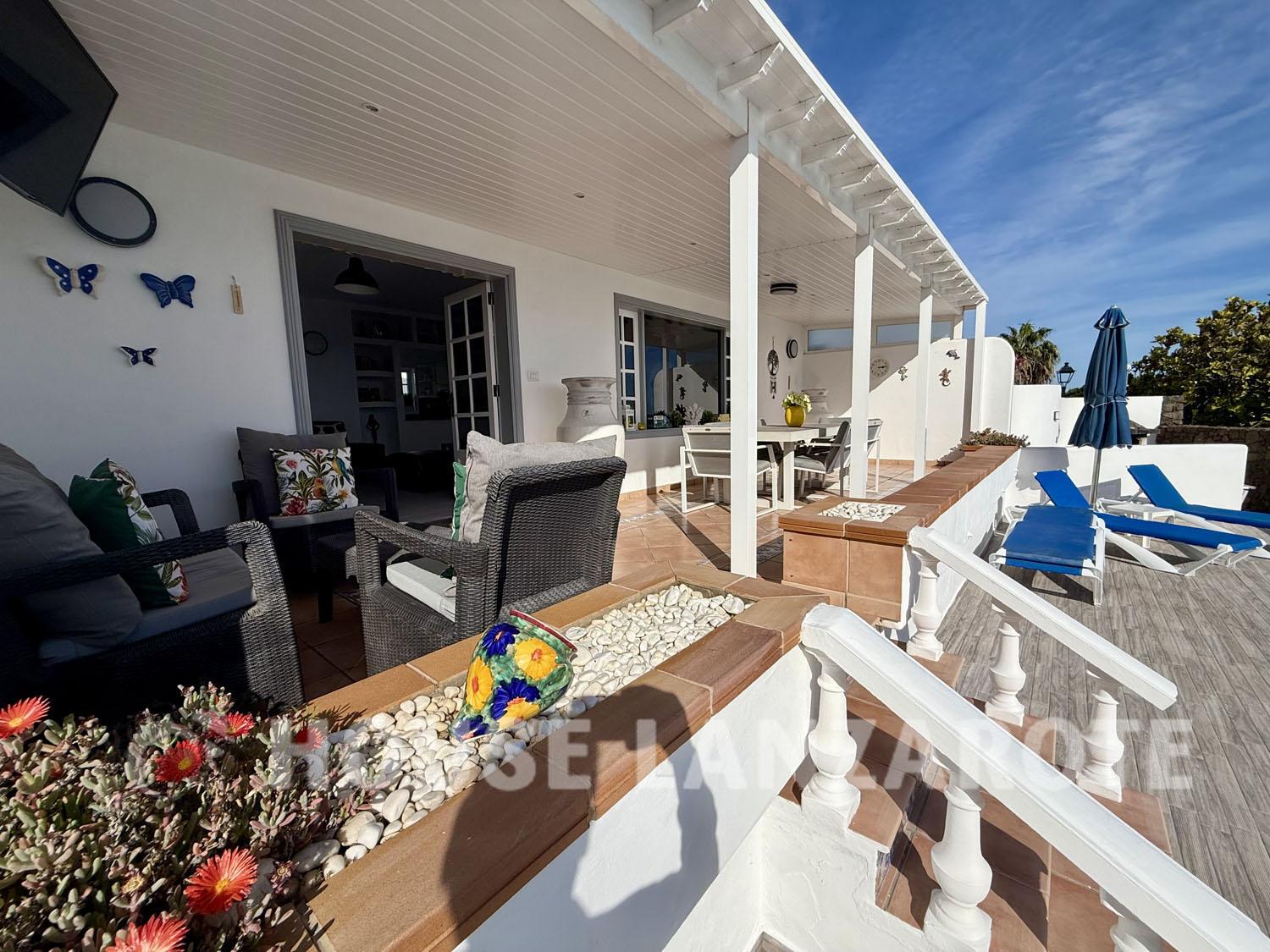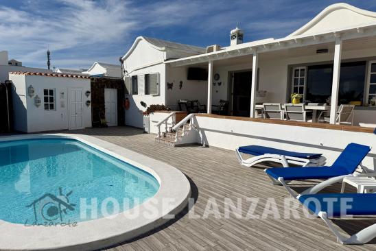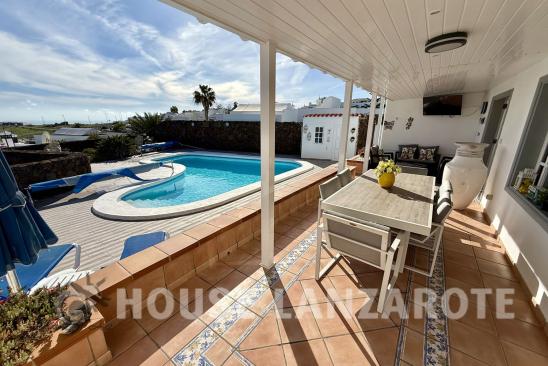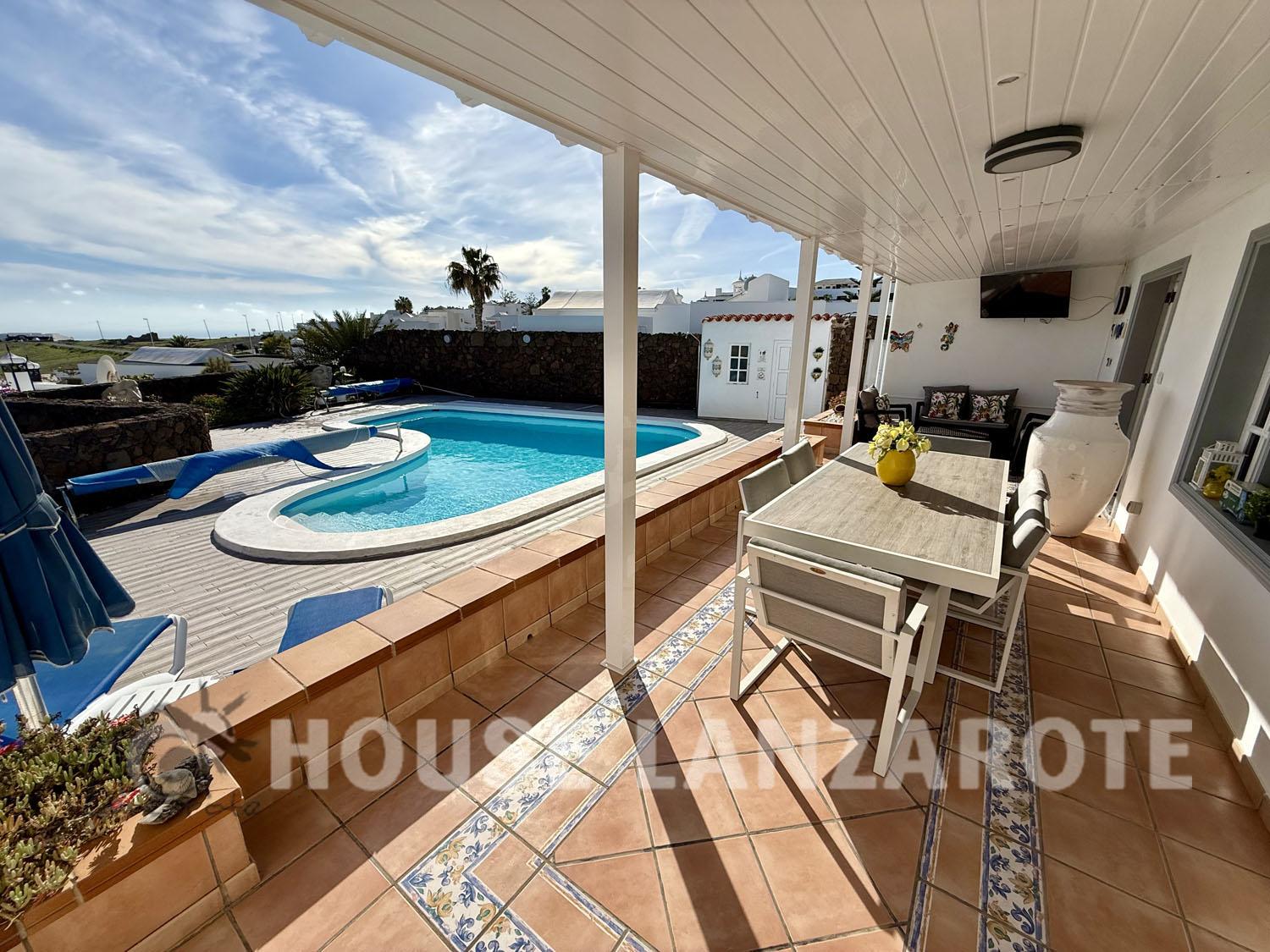 Charming villa with a garage set on a generous plot of land. This home features 3 bedrooms and 2 bathrooms, along with an inviting entrance, a cozy lounge/diner, a spacious kitchen, a larder, and practical drying and laundry areas. The large master bedroom comes with its own en-suite bathroom, while the 2 additional bedrooms share a well-appointed bathroom. You'll find a heart-shaped heated pool surrounded by plenty of sunbathing space, alongside a BBQ corner that includes a pool table, perfect for relaxing and entertaining. The property also offers picturesque sea views and comes with a transferable tourist license, making it a great investment opportunity. Constructed area 190m² on a plot of 830m².